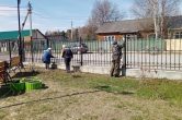 Продолжилась покраска ограды, а также клумб, которые были подготовлены для посадки цветов.