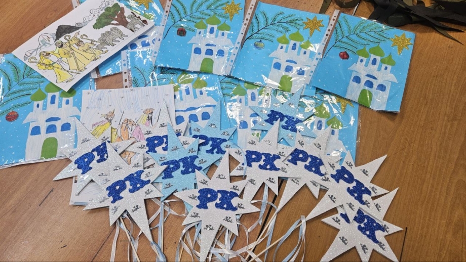 - 30 праздничных рождественских продуктовых наборов с письмами и открытками от детей.