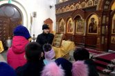 14 декабря была проведена просветительская экскурсия в православный храм в честь иконы Божией Матери «Всех скорбящих Радость» для воспитанников 3-го и 4-го класса шестой Лангепасской гимназии. Экскурсию для детей проводил иерей Николай Спамбетов. Вначале батюшка познакомил ребят с внешней архитектурой православного храма, указав на то, что наш храм имеет форму корабля, как символ спасительного судна, спасающего людей из бушующего моря мирских страстей. Введя детей в Храм, отец Николай рассказал, о том, что храм делится на три основных части, и каждая из частей имеет своё глубокое духовное и символическое значение. Внимание детей в центре храма привлёк иконостас своей красотой и большим количеством разных икон. Также священнослужитель провел детей на клирос – место где собирается для проведения богослужения церковный хор. В окончание экскурсии ребята поднялись вместе с батюшкой на колокольню, где некоторые из них смогли позвонить в колокола.