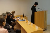Выступающим по данному вопросу был заявлен настоятель Прихода храма Святого Духа, иерей Алексий Бараболя. На слушаниях присутствовали благочинный Сургутского благочиния, протоиерей Антоний Исаков, директор СПК Шутов В.Н. с представителями администрации колледжа, староста храма Самсонов В.В., а также члены Приходского совета.