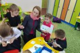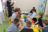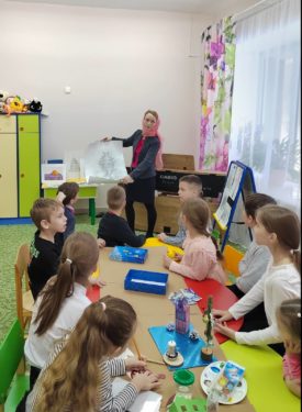 Далее на комбинированном занятии изобразительного и декоративно-прикладного искусства группа начала подготовку к следующему важному событию – встрече праздника Рождества Христова. На примере представленных работ ученики рассмотрели, что такое композиция, из чего она может состоять и каких видов бывает. Затем разделившись по интересам, дети занялись, каждый любимым делом. Кто-то вырезал, другие раскрашивали, а некоторые мастерили и украшали объёмные фигуры. Эти работы впоследствии должны стать частью общей рождественской декоративной композиции.