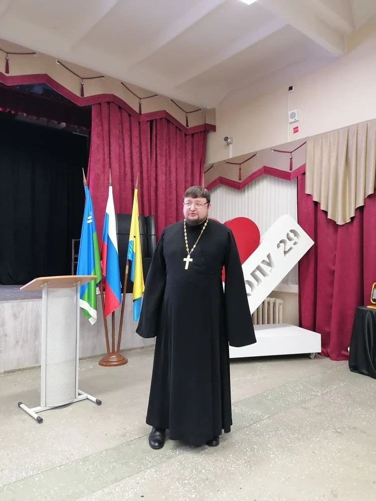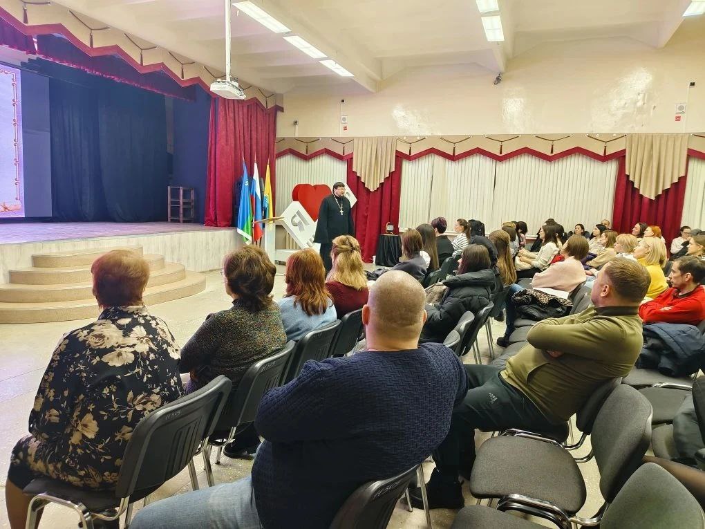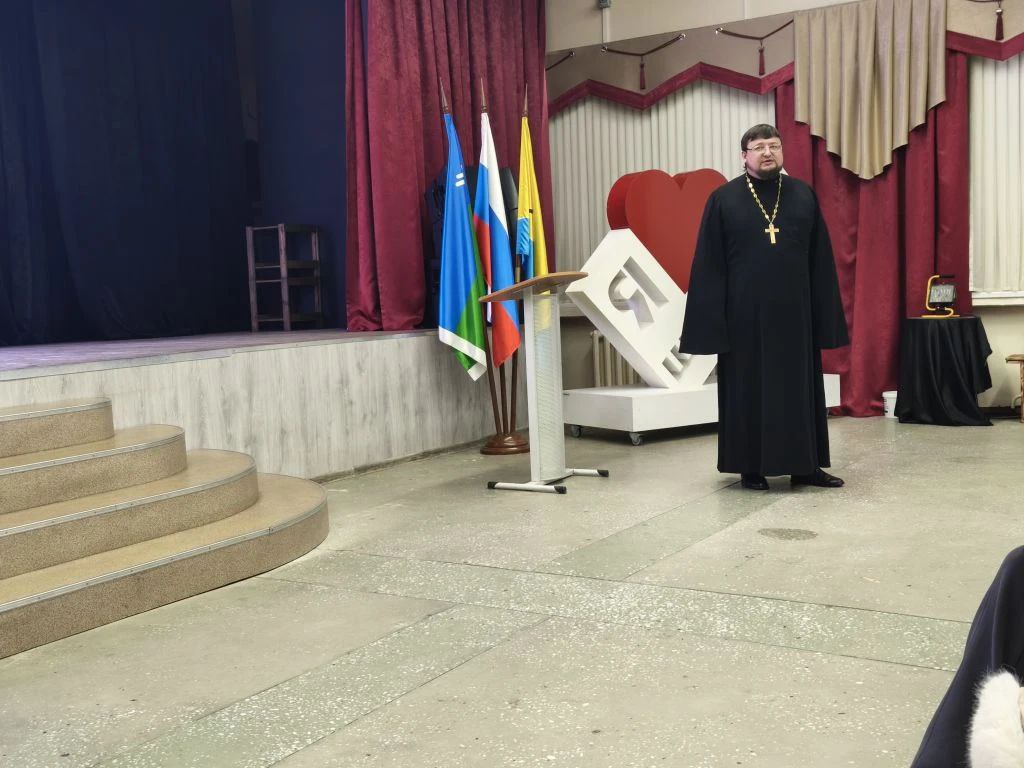 В собрание принял участие иерей Вячеслав Макарцов, обратившийся к родителям учащихся с раскрытием темы важности выбора модуля «Основы православной культуры».