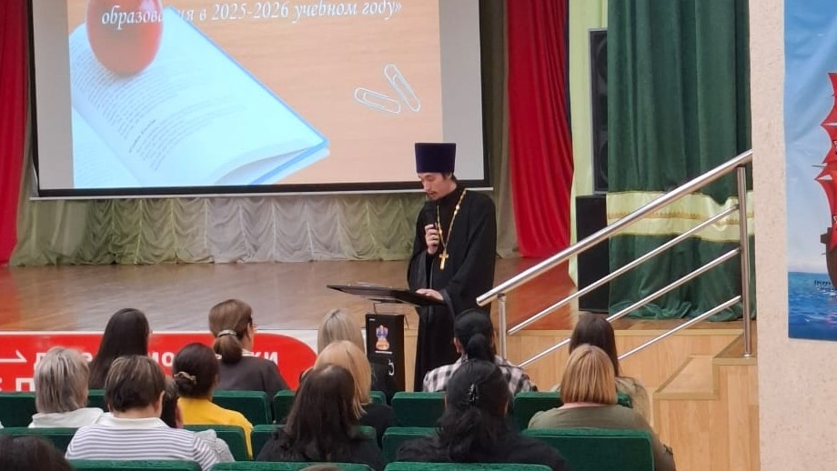 На собрание выступил иерей Богдан Черныш, клирик Прихода Храма в честь великомученика Феодора Стратилата. В своём слове отец Богдан поздравил с началом нового учебного года и зачитал поздравление митрополита Павла с Днём знаний.