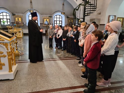 Традиционно в день Отдания праздника Рождества Христова приход храма в честь иконы Божией Матери «Всех скорбящих Радость» посетили учащиеся 4-х классов МБОУ СОШ №6. Ребят встретили клирик храма протоиерей Павел Придатченко и директор Воскресной школы Суботьялова Дина Маратовна. У рождественского вертепа отец Павел рассказал ребятам историю праздника Рождества Христова, о православных традициях праздника и значении рождественского вертепа. В храме святых мучениц Веры, Надежды, Любови и матери их Софии протоиерей Павел задавал ребятам вопросы о Рождестве Христовом, желая узнать, что знают ребята об этом и ответил на их вопросы. Учащиеся поставили свечи перед образами Господа нашего Иисуса Христа, Пресвятой Богородицы и святых. Затем ребятам в актовом зале храма был продемонстрирован фильм о Рождестве Христовом и праздничная программа с колядками, подготовленная учащимися, родителями и педагогами Воскресной школы Прихода.