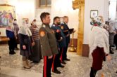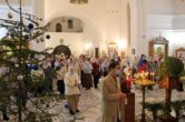 В праздничном убранстве храм Святой Троицы. Прихожане поклоняются иконе Рождества Христова заботливо убранной пихтовыми ветками, символизирующими вертеп, в котором родился младенец Иисус.
