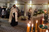Настоятель храма поздравил прихожан с праздником, пожелал радости и укрепления в любви Божией. Торжество завершилось совместной праздничной трапезой, приготовленной совместными усилиями прихожан. Детишки читали стихи на Рождественскую тематику и пели колядки, отец Артемий вручил подарки каждому ребенку и поблагодарил детей за активное участие в жизни храма.
