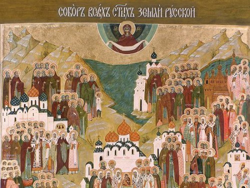 Мы прославляем всех тех, которые в разных концах земли Русской утверждали христианство, проповедовали тем, которые еще христианства не знали. Русь объединяла всех в единственном крове не столько единством границы, сколько духовным призывом к святости святых, в земле Российской просиявших. Многие имена вошли в состав русского народа. И хотя в основе русского народа – народ славянский, в нем есть множество разных имен, но никто не считался чужим, как только принимал православную христианскую веру. Православная вера спасла Русь. Православная вера ее освятила. Православная вера ее укрепила. И в тяжкие времена татарского ига чем спасались русские люди? Только верой в Бога, и тогда, в те тяжкие времена, наибольше строилось храмов, наибольше основалось монастырей. И в те тяжкие времена русские люди всегда особенно призывали Бога – и тогда духовно воскресала Русь.
