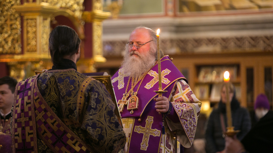 В канун Недели 4-й Великого поста, митрополит Ханты-Мансийский и Сургутский Павел совершил Всенощное бдение в Воскресенском кафедральном соборе г. Ханты-Мансийска