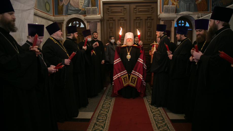В праздник Светлого Воскресения Христова, митрополит Ханты-Мансийский и Сургутский Павел совершил Великую Пасхальную Вечерню со встречей Благодатного огня в Воскресенском кафедральном соборе г. Ханты-Мансийска