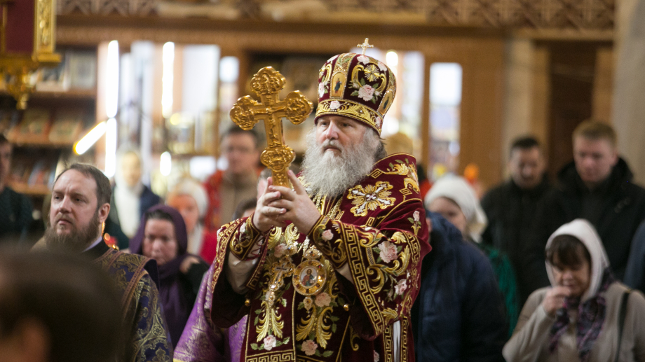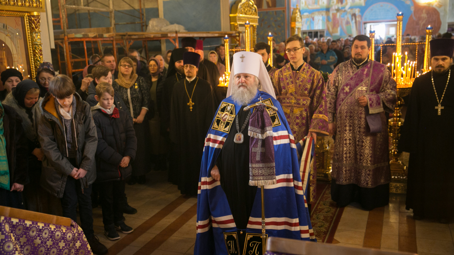 В четверг первой седмицы Великого поста митрополит Ханты-Мансийский и Сургутский Павел молился за уставным богослужением во временном храме Троицкого кафедрального собора г. Сургута