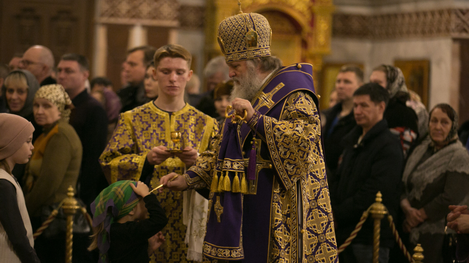 В пятницу первой седмицы Великого поста митрополит Ханты-Мансийский и Сургутский Павел совершил Литургию Преждеосвященных Даров в Преображенском кафедральном соборе г. Сургута
