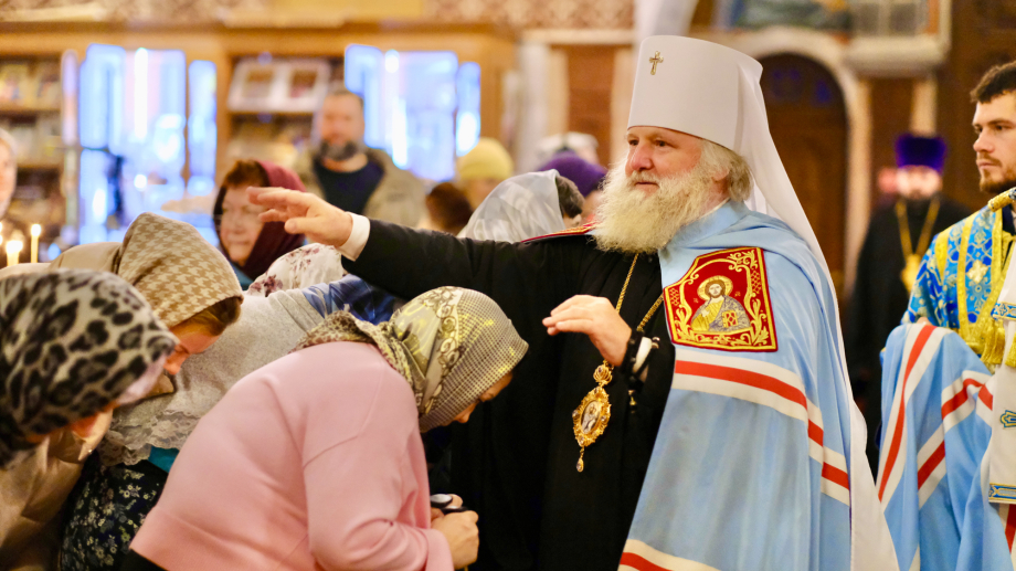 В канун праздника Введения во храм Пресвятой Богородицы митрополит Павел совершил всенощное бдение в Воскресенском кафедральном соборе г. Ханты-Мансийска