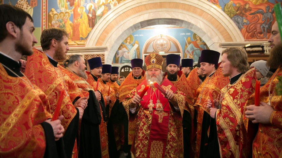 В праздник Светлого Воскресения Христова, митрополит Ханты-Мансийский и Сургутский Павел совершил Великую Пасхальную Вечерню со встречей Благодатного огня в Воскресенском кафедральном соборе г. Ханты-Мансийска