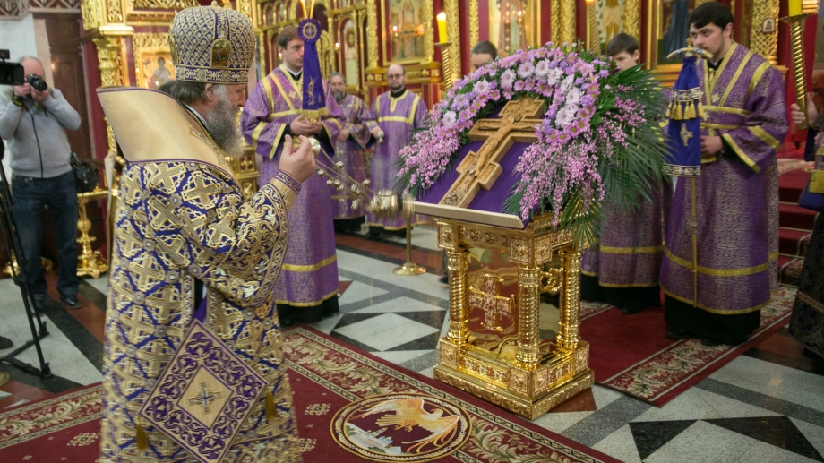 В канун Недели 3-й Великого поста, Крестопоклонной, митрополит Ханты-Мансийский и Сургутский Павел совершил Всенощное бдение в Воскресенском кафедральном соборе г. Ханты-Мансийск