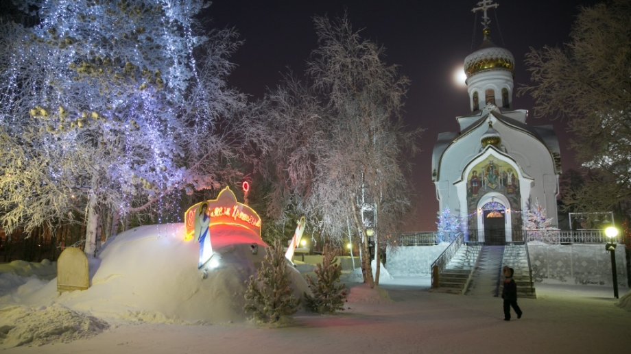 В канун праздника Рождества Господа Бога и Спаса нашего Иисуса Христа совершил Всенощное бдение в Воскресенском кафедральном соборе г. Ханты-Мансийска.