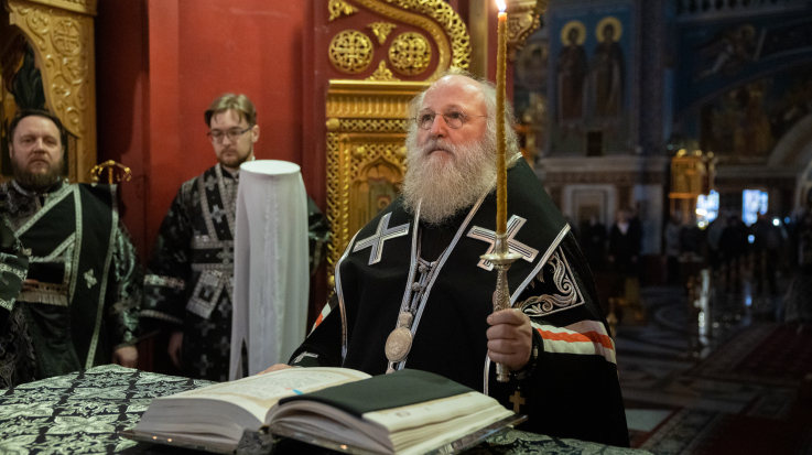В канун Великого понедельника митрополит Павел совершил вечернее богослужение в Воскресенском кафедральном соборе г. Ханты-Мансийска