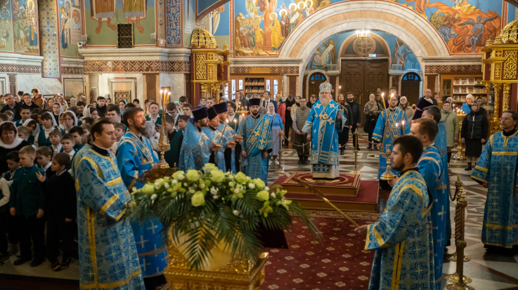 В канун праздника Благовещения Пресвятой Богородицы митрополит Павел совершил всенощное бдение в Воскресенском кафедральном соборе г. Ханты-Мансийска