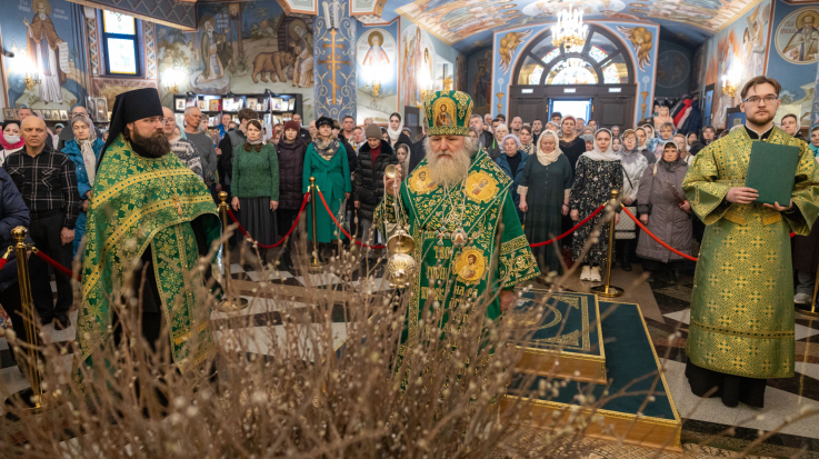 В канун Вербного воскресения митрополит Павел совершил всенощное бдение в Троицком кафедральном соборе г. Сургута
