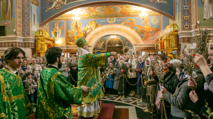В праздник Входа Господня в Иерусалим митрополит Павел совершил Литургию в Воскресенском кафедральном соборе г. Ханты-Мансийска