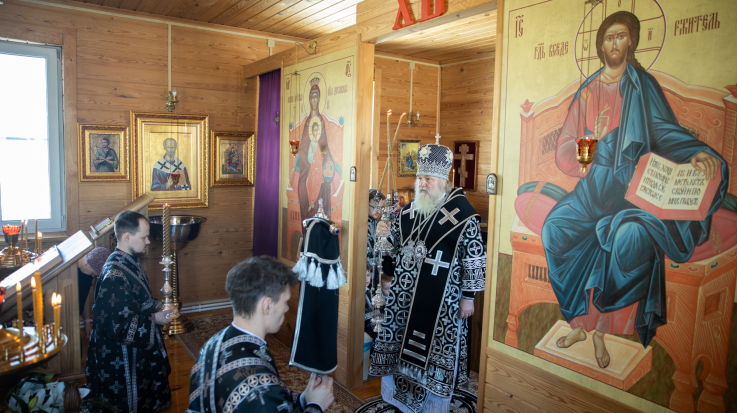 В Великий понедельник страстной седмицы митрополит Павел совершил Литургию Преждеосвященных Даров во временном храме в честь пророка Илии г. Ханты-Мансийска