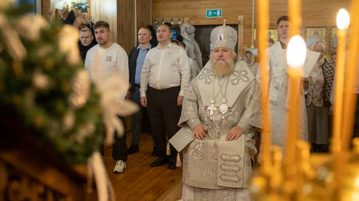 В Новогоднюю ночь митрополит Павел молился за ночной Литургией в храме в честь Покрова Пресвятой Богородицы г. Ханты-Мансийска