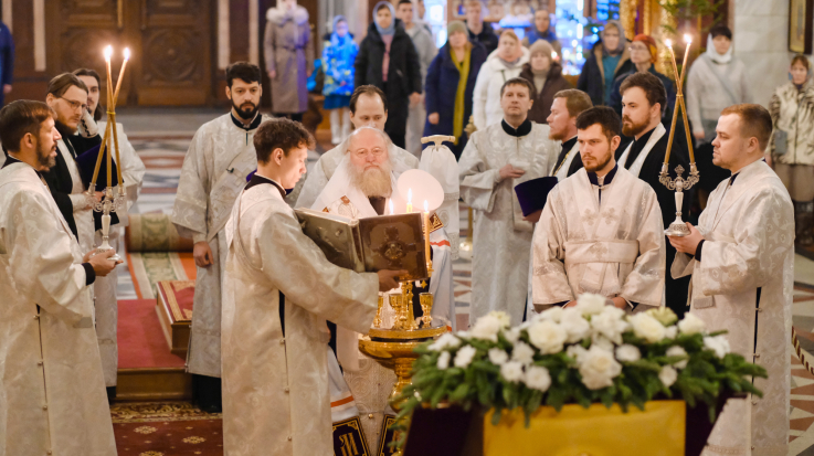 31 декабря 2025 года, митрополит Ханты-Мансийский и Сургутский Павел совершил молебен на новолетие в Воскресенском кафедральном со...