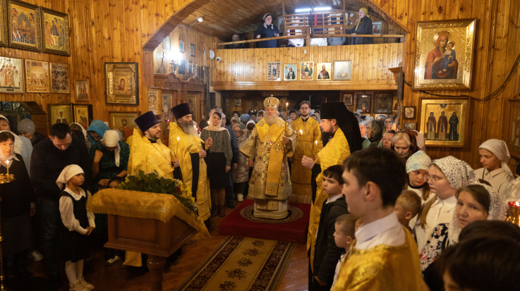 В престольный праздник митрополит Павел совершил Литургию в храме в честь святителя Тихона, патриарха Московского и всея России в п. Нижнесортымский