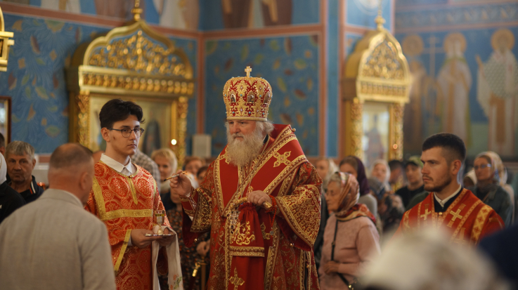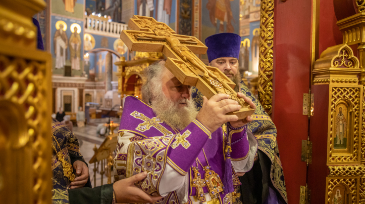 В канун праздника Происхождения Честных Древ Животворящего Креста Господня митрополит Павел совершил вечернее богослужение в Воскресенском кафедральном соборе г. Ханты-Мансийска