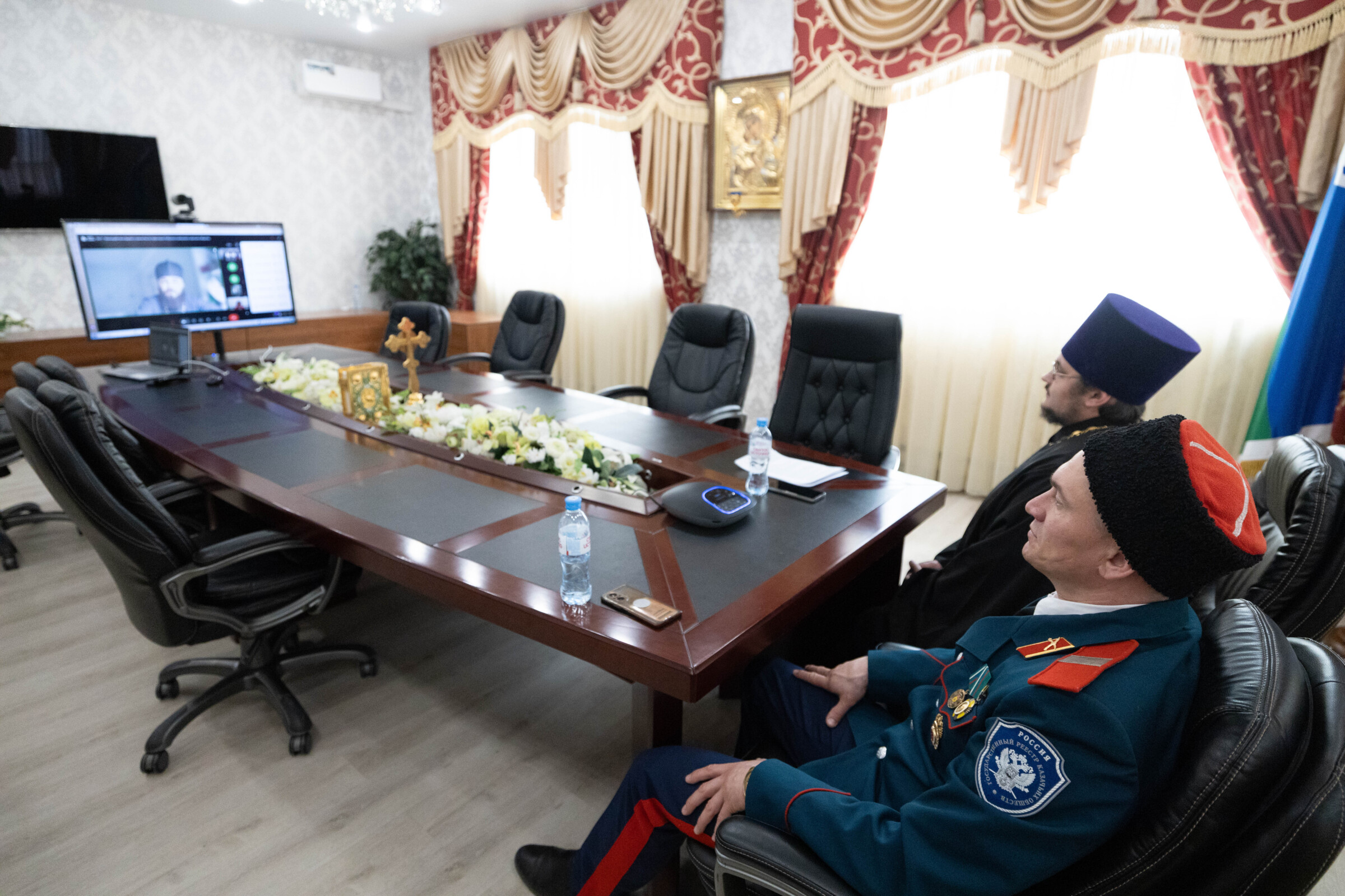 30 апреля по благословению руководителя Синодального комитета по взаимодействию с казачеством митрополита Ставропольского и Невинномысского Кирилла, состоялся вебинар «Взаимодействие Церкви и казачества на территории Сибирского войскового казачьего общества» с руководителями и сотрудниками епархиальных отделов по взаимодействию с казачеством, клириками, ответственными за взаимодействие с казачеством, казачьими духовниками епархий, атаманами казачьих обществ и их заместителями по взаимодействию с Русской Православной Церковью.