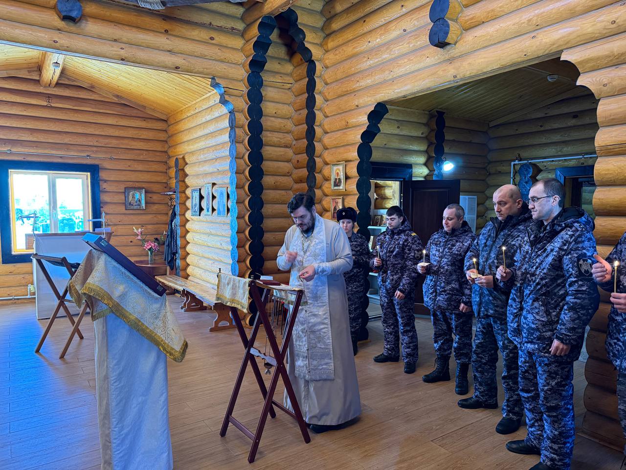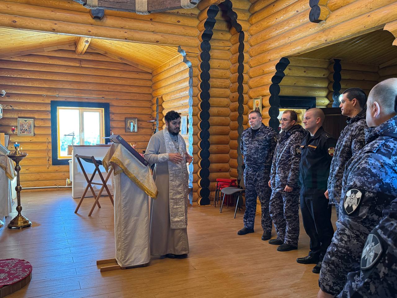20 февраля 2026 года в преддверии дня защитника отечества сотрудники МОВО Росгвардии г. Нефтеюганска посетили храм святого праведного Иова многострадального где, накануне дня начала специальной военной операции, была отслужена заупокойная лития в память о убиенных на поле брани вождях и войнах. По окончании литии настоятель храма иерей Федор Максимов рассказал присутствующим о значении и устройстве православных храмов.