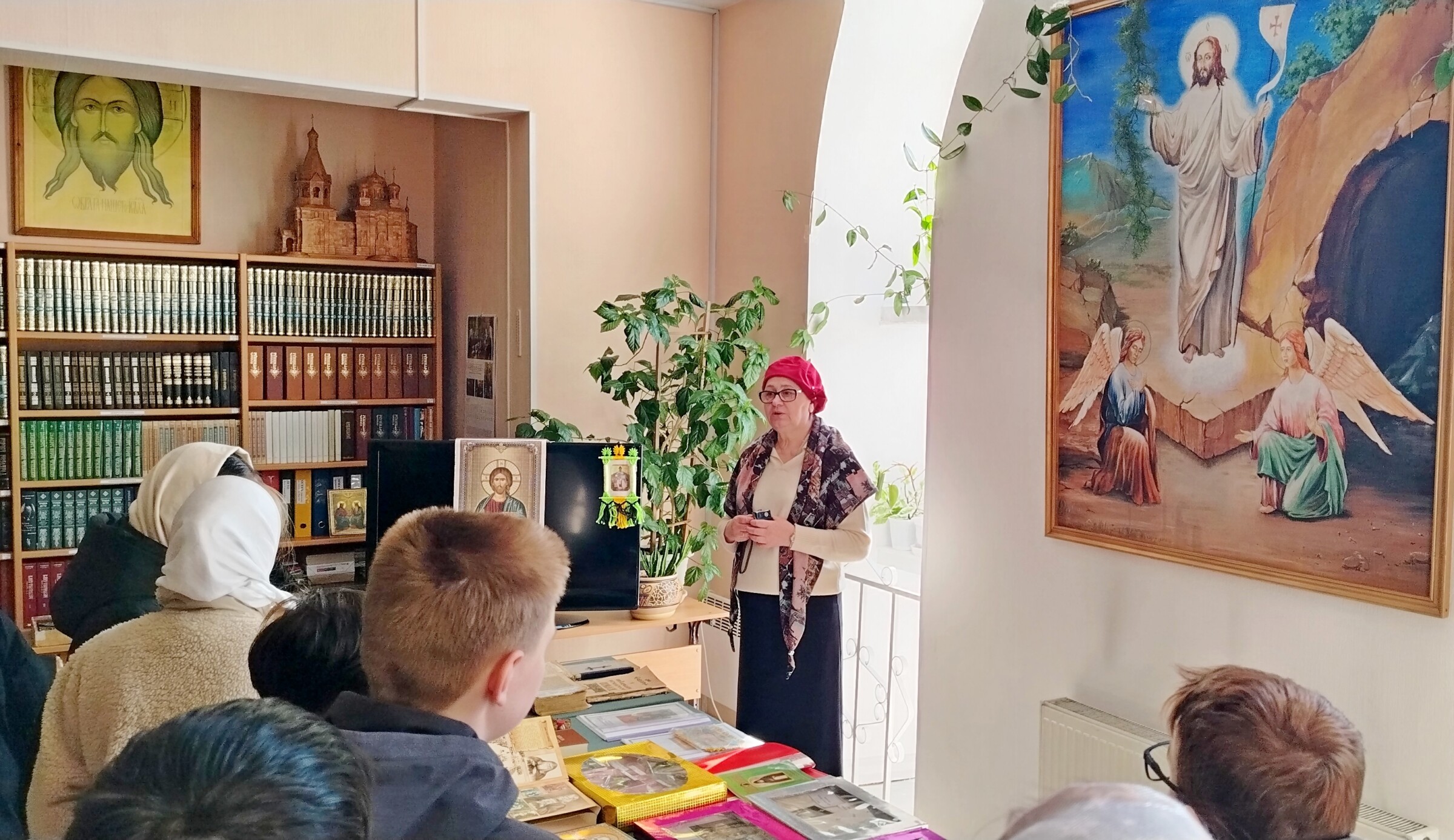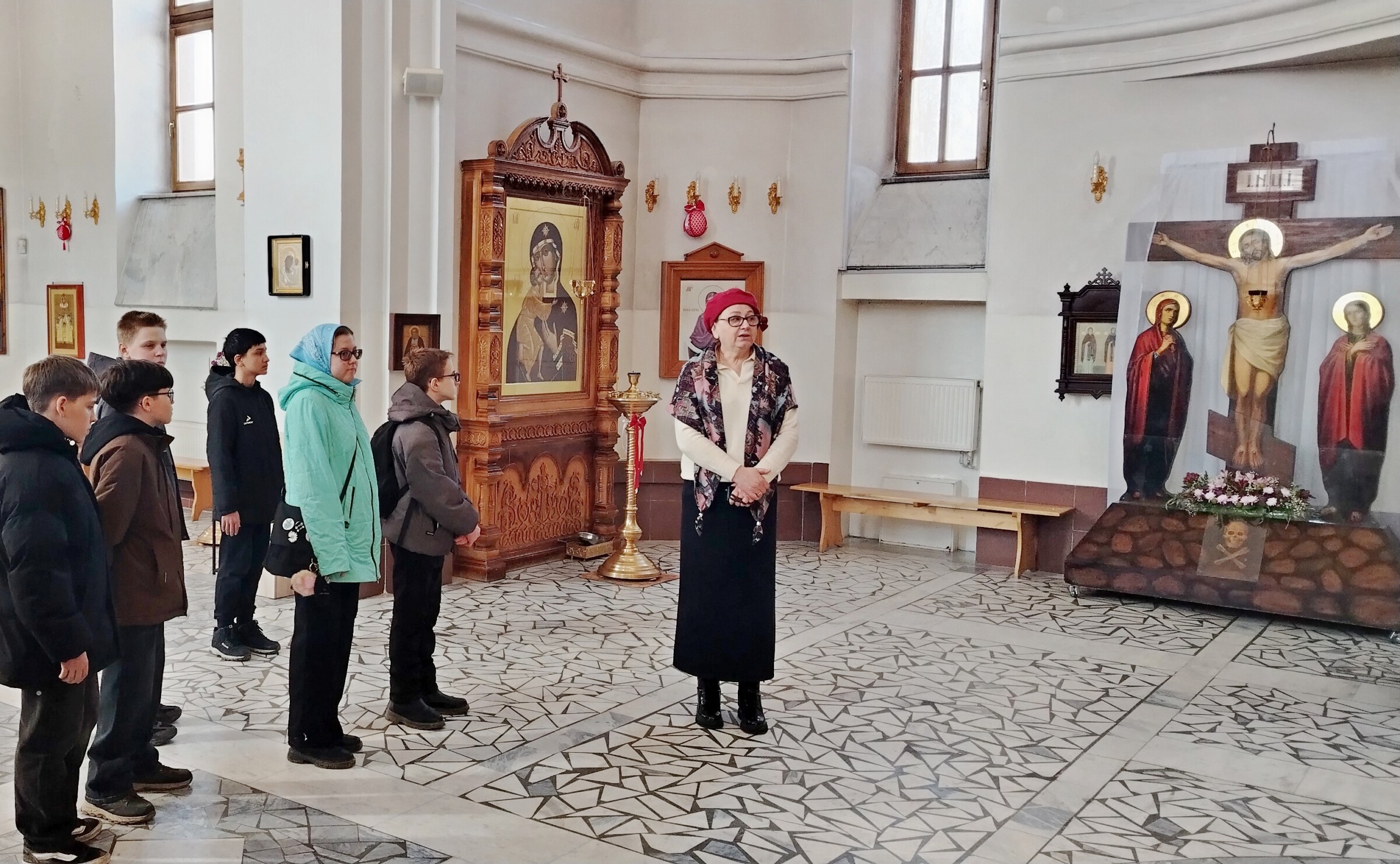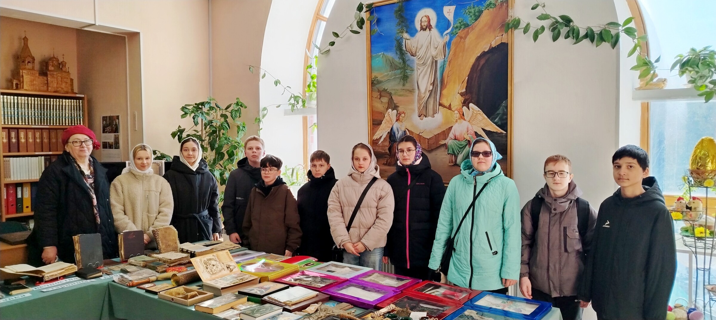 16 апреля экскурсия по храму Святой Троицы была проведена для учащихся 7-го класса ПСОШ № 4. Ребята с интересом и вниманием знакомились с устройством храма и его символикой, слушали рассказ о пасхальных традициях, о том, почему на Пасху освящают крашеные яйца, куличи и пасхи, что символизирует церковная свеча и крест, который из символа смерти превратился в символ обещания вечной жизни. После посещения приходской библиотеки ребята поднялись на колокольню, предварительно выслушав рассказ о колоколах, колокольнях и благодатном колокольном звоне. В завершении экскурсии, собравшись в нижнем храме в честь святого благоверного великого Александра Невского, совместно обсудили значение главного христианского праздника Светлого Христова Воскресения и вместе исполнили легко запоминающийся тропарь праздника,