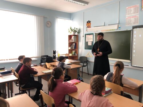 В посёлке батюшка посетил Аганскую общеобразовательную школу, где провёл урок «Основы православной культуры» в 4-м классе. После чего провёл 3 беседы, в которых приняли участие все учащиеся школы с первого по одиннадцатый класс. Ребята имели возможность в непринужденной обстановке побеседовать со священником, обсудить волнующие их проблемы, задать вопросы. Общей темой всех бесед было понятие добра и зла.