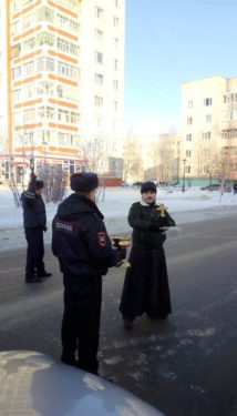 14 ноября по приглашению священника православного храма «В честь иконы Божией матери «Всех скорбящих Радость» сотрудники Госавтоинспекции Лангепаса побывали на молебене «о путешествующих». Затем иерей Николай Спамбетов провёл освящение наиболее аварийноопасных участков улично-дорожной сети города.