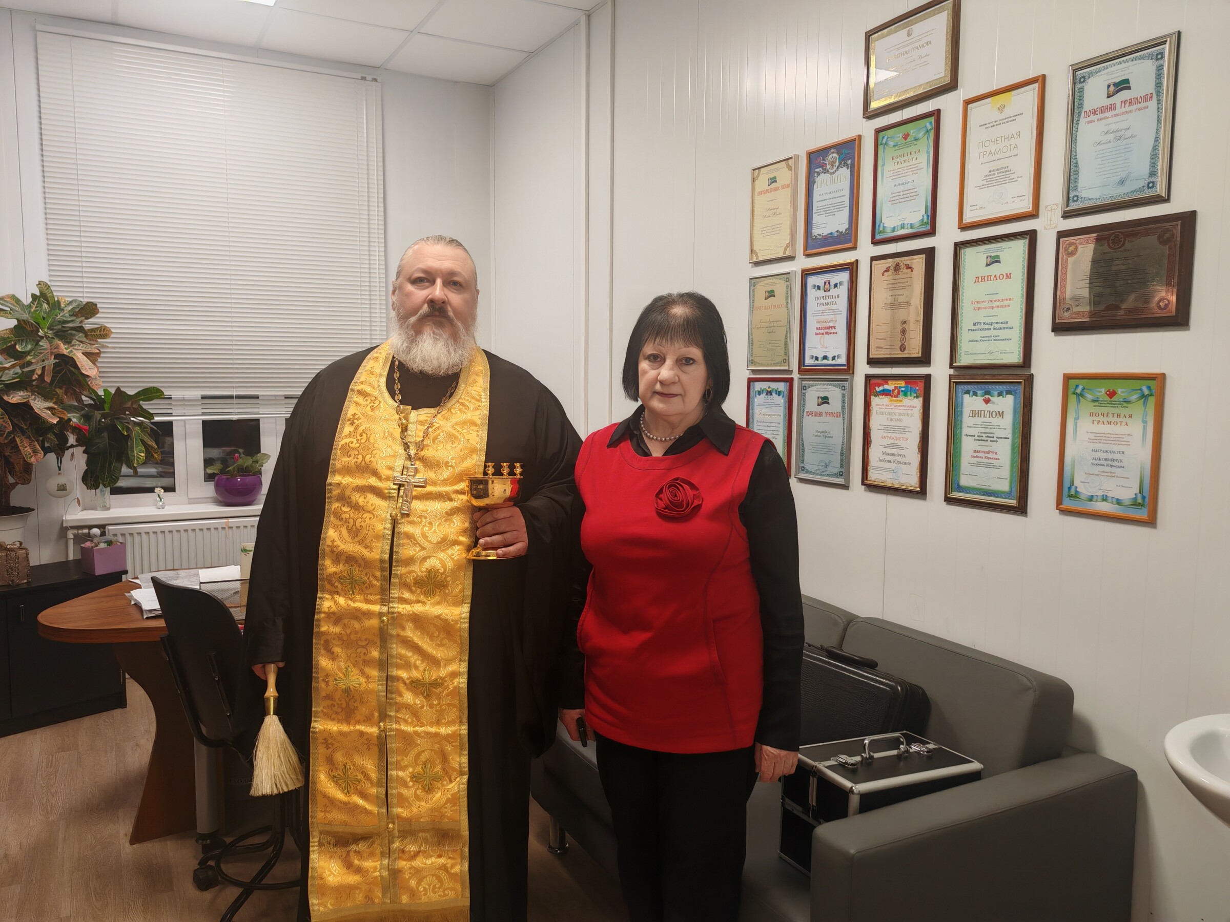 Настоятель храма Богоявления Господня г. Ханты-Мансийска иерей Константин Мемячкин освятил БУ «Кедровская участковая больница» расположенную в пос. Кедровый Ханты-Мансийского района. На освящении присутствовала главный врач больницы Любовь Юрьевна Маковийчук и медперсонал.