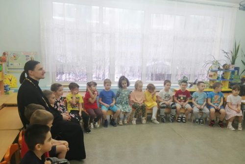 1 февраля клирик храма Покрова Божией Матери г.Мегиона иерей Илия Балабонкин побывал в детском саду №8 «Белоснежка» в гостях у старшей группы. Отец Илия побеседовал с детьми об общечеловеческих нравственных ценностях: добре и зле, и критериях, по которым их можно различить.