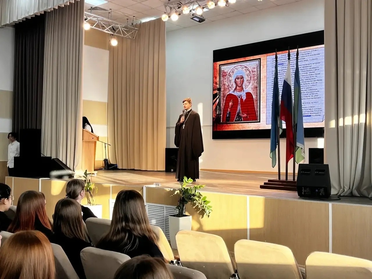 24 января 2026 года в рамках мероприятия со студентами БУ «Когалымский политехнический колледж» встретился иерей Тихон Морозан — клирик храма святой мученицы Татианы города Когалыма.