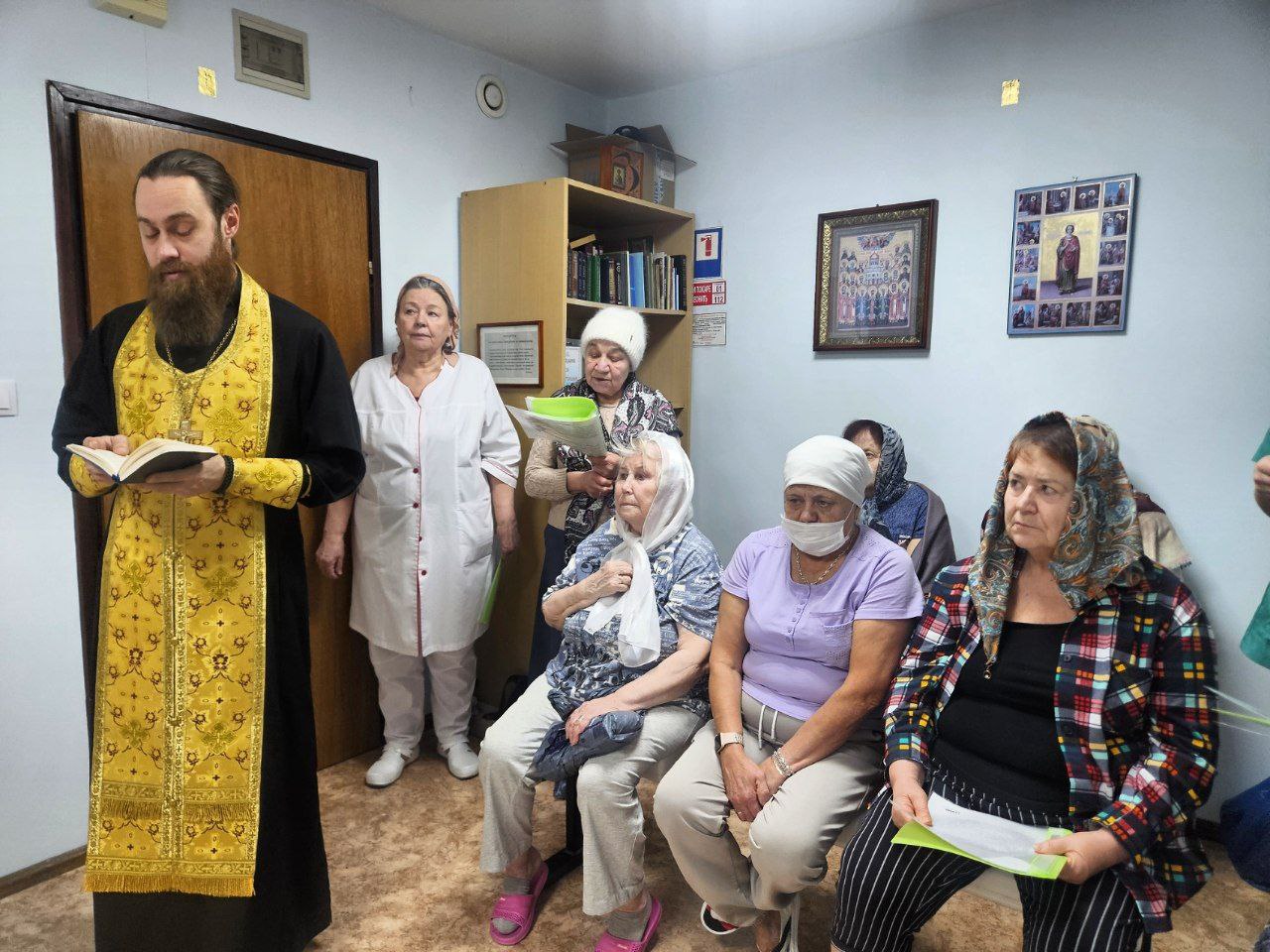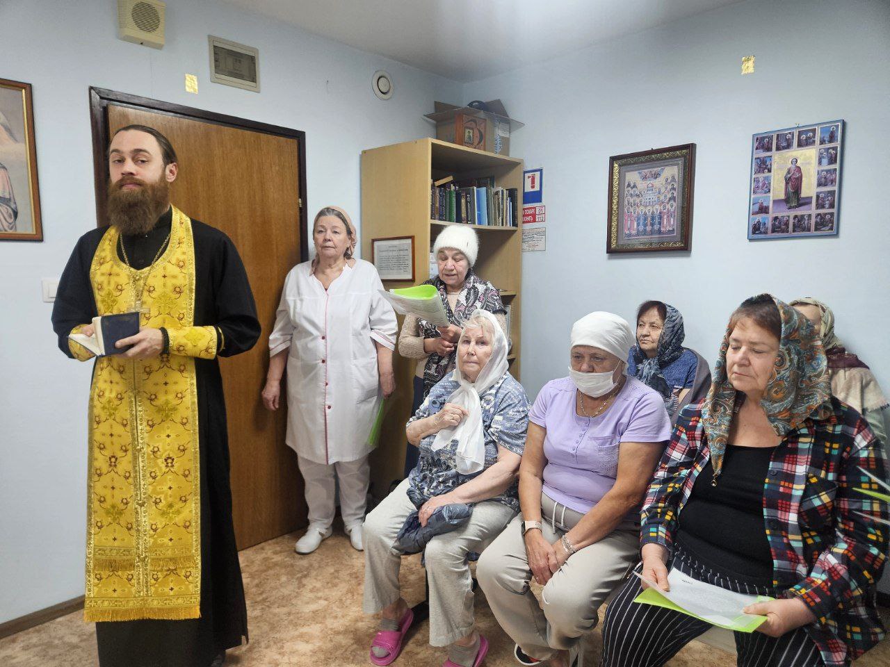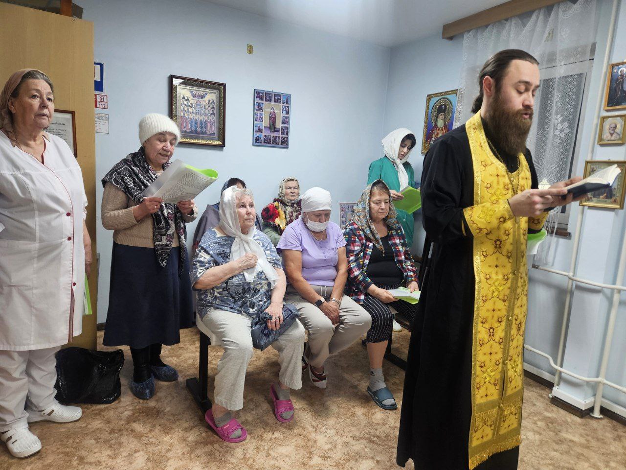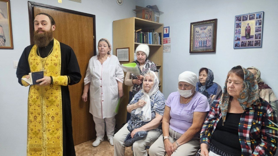 В Молельной комнате центра, освященной в честь великого целителя и святого Пантелеимона, отец Игорь отслужил молебен о здравии всех болящих. За душевным и сосредоточенным богослужением вместе молились как пациенты, которые смогли присоединиться, так и медицинские сотрудники, ежедневно несущие своё ответственное служение. После молебна отец Игорь пообщался с пациентами и персоналом, подарив всем слова поддержки.