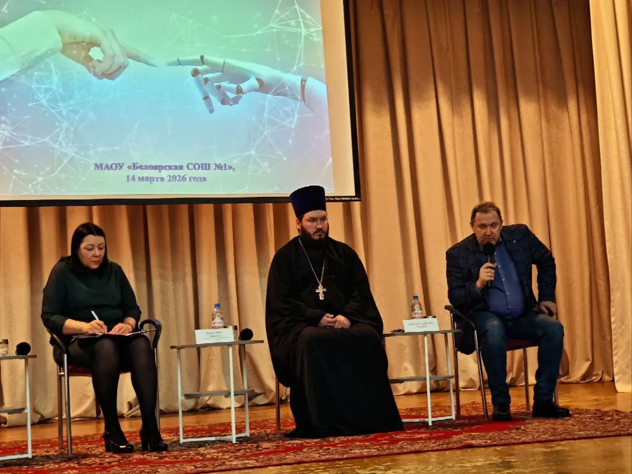 Священник храма свт. Николая чудотворца пгт. Белый Яр посетил семинар ‘ Искуственный интеллект и нейросети’ проводившийся в 1 Белоярской школе. Иерей Павел Кравцов сказал слово собравшимся о необходимости изучения современных технологий внедряемых в образование для дальнейшего правильного использования такого инструмента как ‘Искуственный Интеллект’.