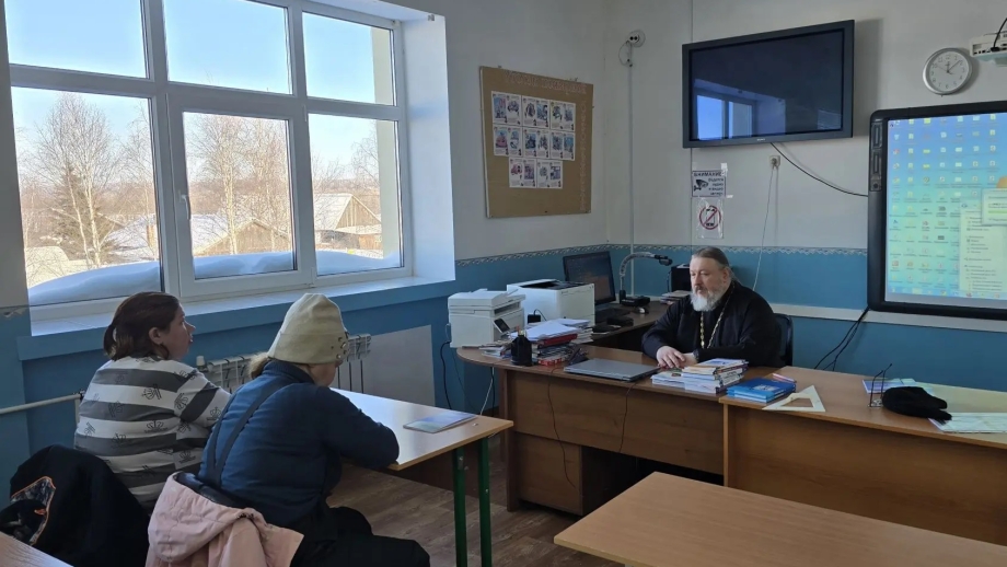 Священник посетил средние общеобразовательные школы в поселках Елизарово и Кедровый Ханты-Мансийского района