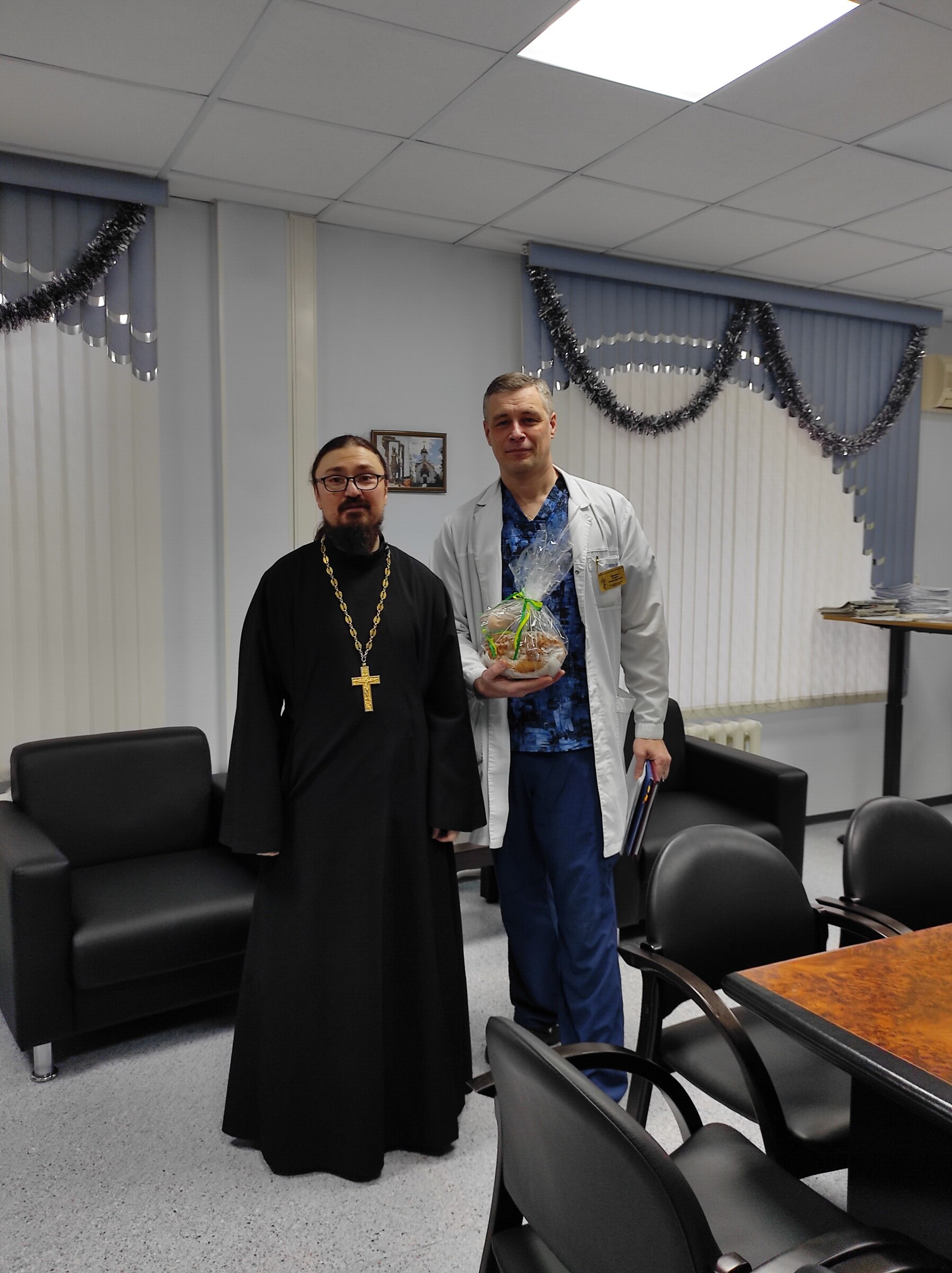 Священник поздравил медицинский персонал Сургутской травматологической больницы с предстоящими праздниками