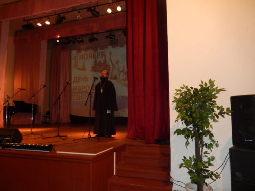 04 ноября 2019 г. в день народного единства и празднования Казанской иконы Божией Матери настоятель храма «Сошествие Святого Духа» иерей Александр Канаев перед началом концерта поздравил жителей п. Красноленинский с праздником.