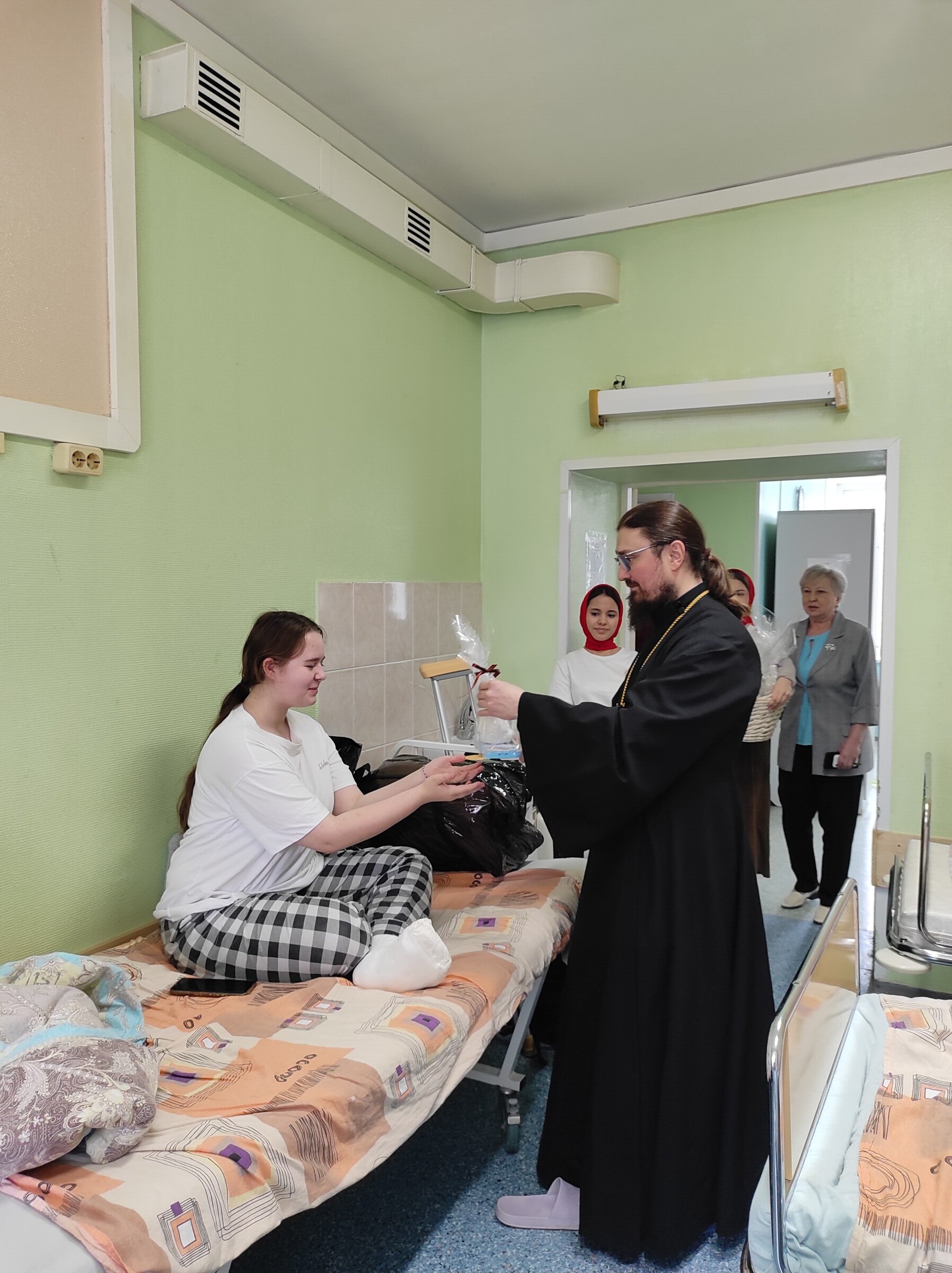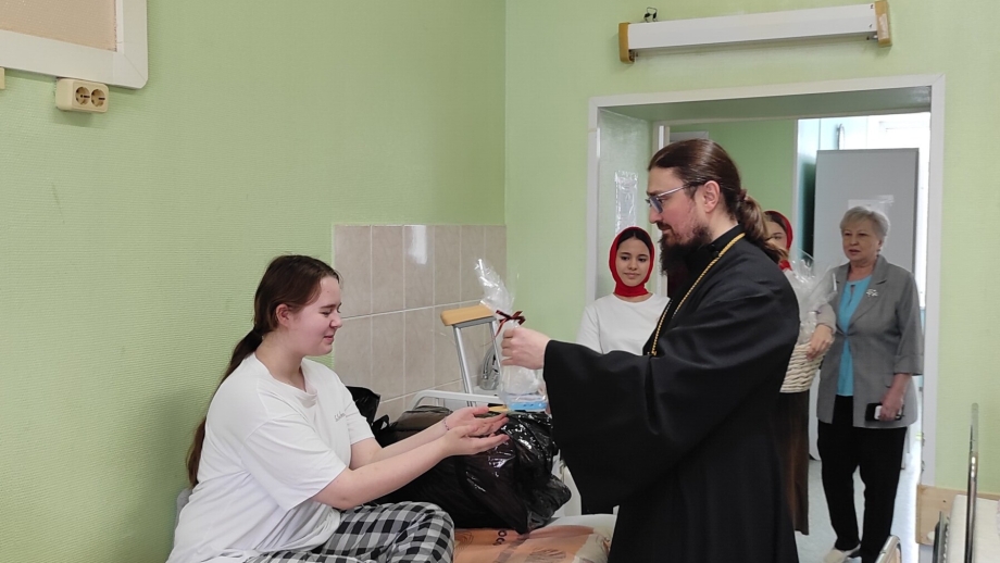 Священник поздравил с праздником Пасхи маленьких пациентов травматологической больницы г.Сургута