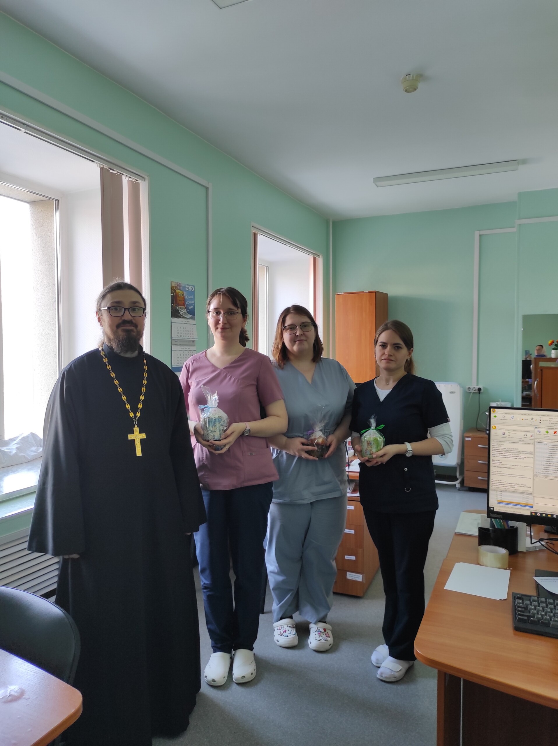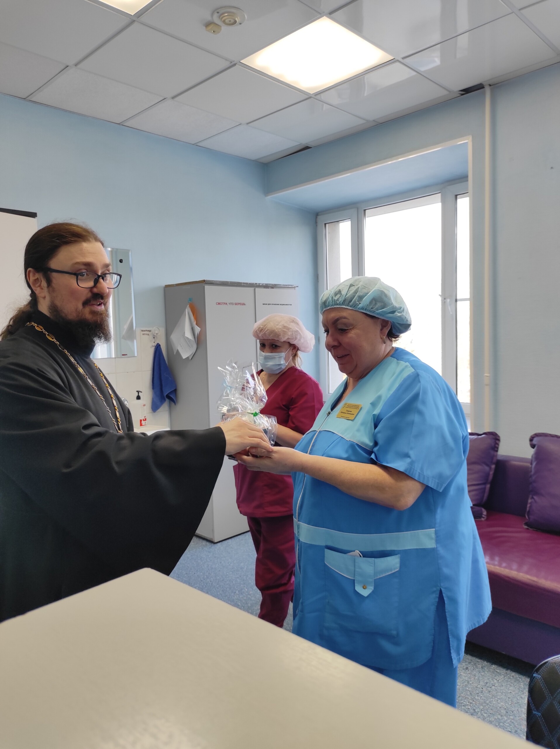 Священник поздравил с праздником Воскресения сотрудников травматологической больницы г.Сургута