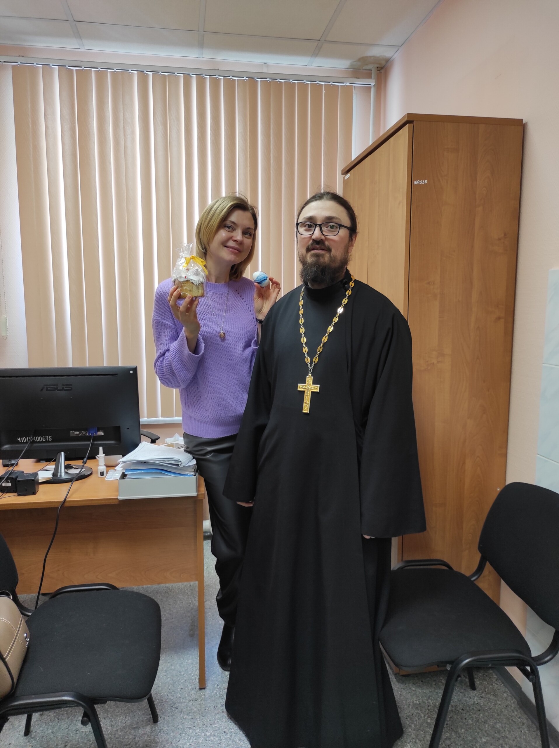 В Понедельник Светлой седмицы настоятель Прихода храма в честь святителя Луки архиепископа Симферопольского г.Сургута иерей Николай Ведерников поздравил с праздником Светлого Христова Воскресения главного врача, администрацию и медицинских работников травматологической больницы. Все в этот день получили Пасхальные угощения.
