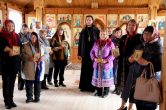 Отец Евгений от всей души призвал всех радоваться, потому что атеистические времена прошли, и многие поняли, для чего нужны вечные ценности – чтобы благополучно устраивалась наша жизнь. В Священном Писании есть такое выражение: премудрый человек. Премудр тот, кто и свою жизнь устроил, как полагается, но еще и построил дом Божий – церковь Христову. Внешнее преходяще, а внутренняя красота состоит в сохранении себя на путях духовной жизни». Батюшка всем гостям подарил иконы и диски для душевного спасения. Экскурсия продолжилась посещением школьного этнографического музея и посадкой кедра «Дерево родов» у обелиска Победы. Всех гостей ожидала хантыйская уха, национальные виды спорта, игры и песни. Галерея