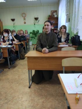 28 февраля клирик храма Покрова Божией Матери г.Мегиона иерей Илия Балабонкин принял участие в заседании городского методического совета педагогов школ, преподающих курс «Истоки» в школах города, проходившем в школе №4.