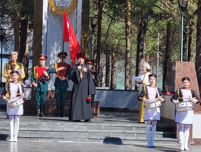 Священник принял участие в митинге памяти в честь 80-летия Победы в пгт. Белый Яр Сургутского района