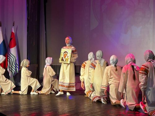 Концертная часть мероприятия началась с пролога, в сюжете которого на сцену зрительного зала была вынесена икона Казанской иконы Божьей Матери. В этот трогательный момент все участники праздничного мероприятия обратившись к святому Образу Пресвятой Богородицы, с молитвой осенили себя крестным знамением. Пресвятая Богородица, спаси нас!