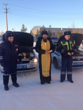 Священник провел беседу с личным составом ГИБДД г. Покачи и освятил служебный транспорт