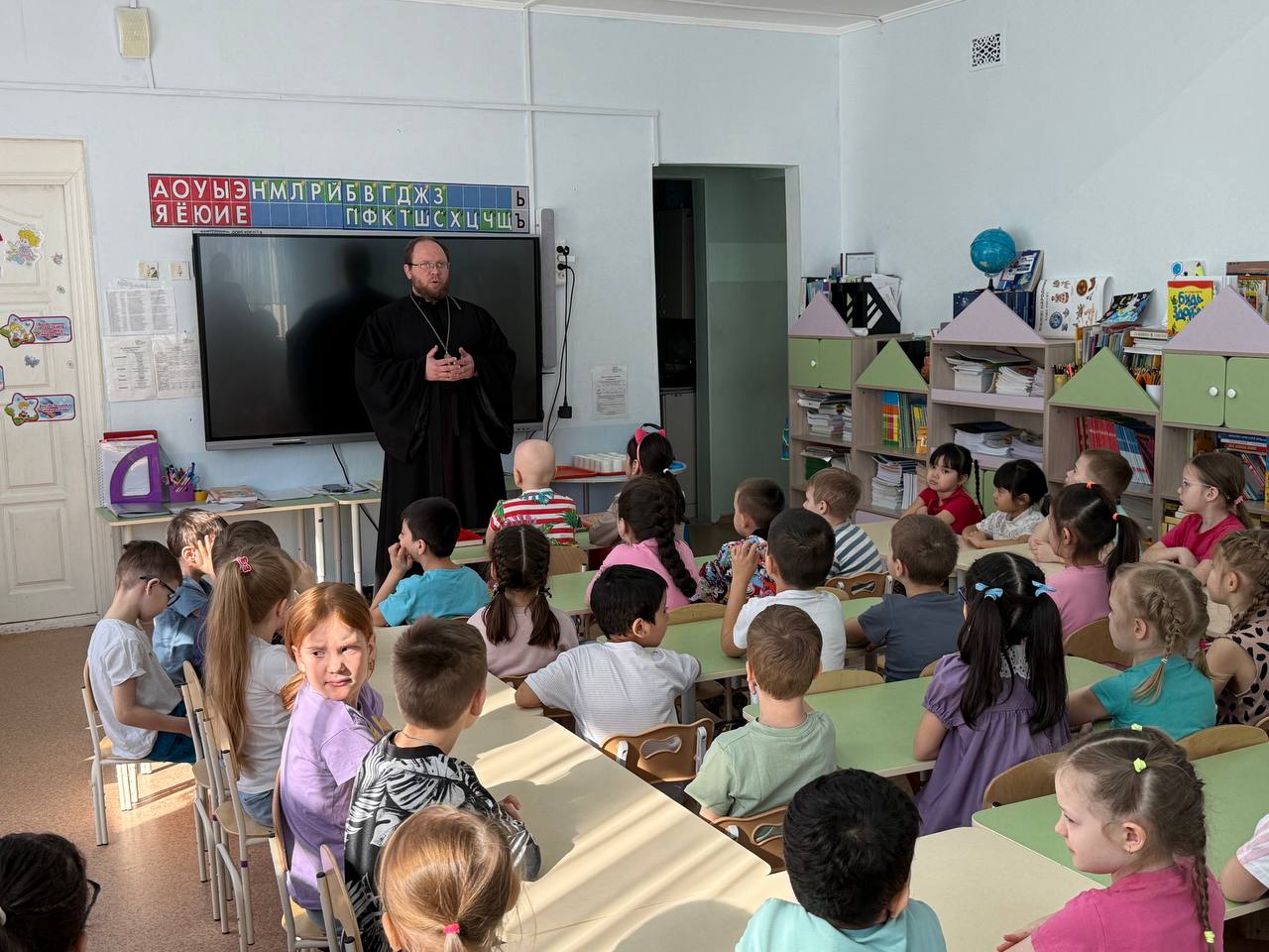 14 апреля 2025 года клирик священник иерей Сергий Мартынюк посетил МБДОУ 31 «Снегирек», где провел беседу на тему «Иисус Христос — спаситель мира» с двумя старшими группами, в главном первом корпусе присутствовало — 2 группы и во втором корпусе присутствовало — 2 группы.
